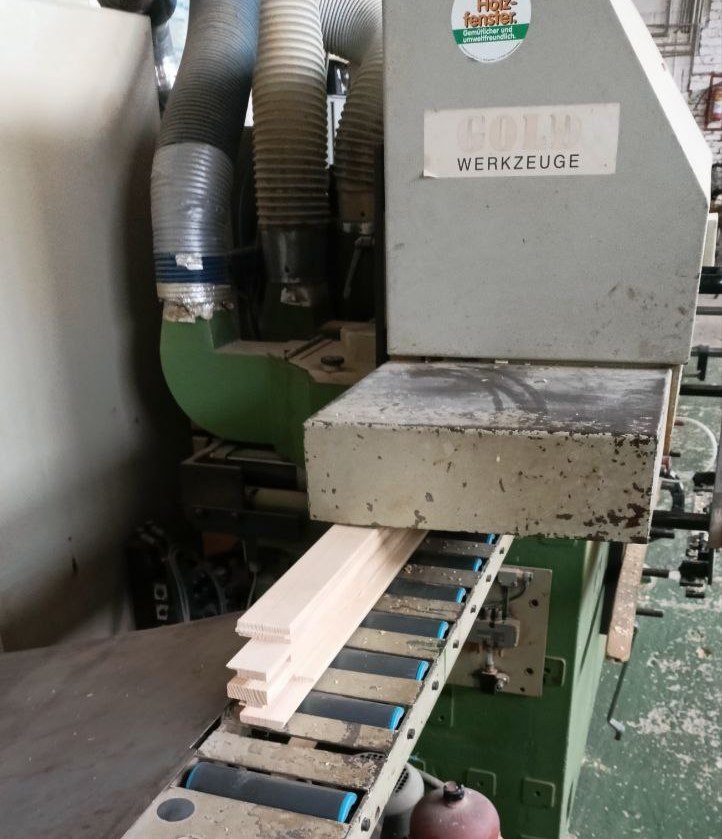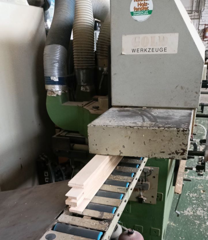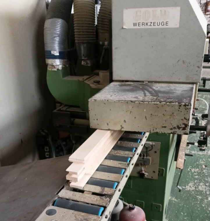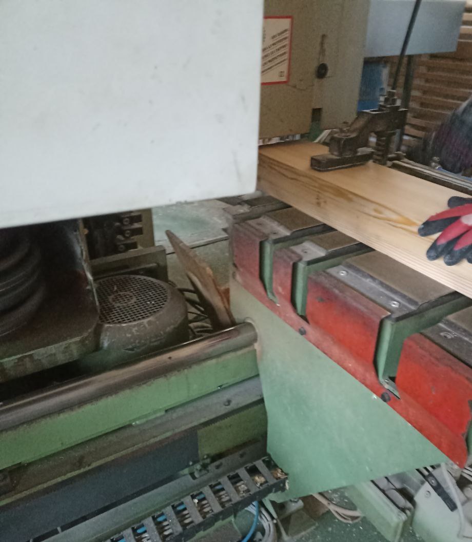3. После торцевания бруски строгаются. Происходит это на строгальном станке Gubisch с четырех сторон одновременно, при этом лицевые стороны строгаются дважды, с очень высокой чистотой обработки.