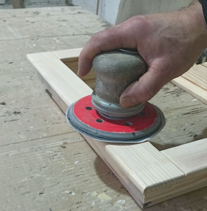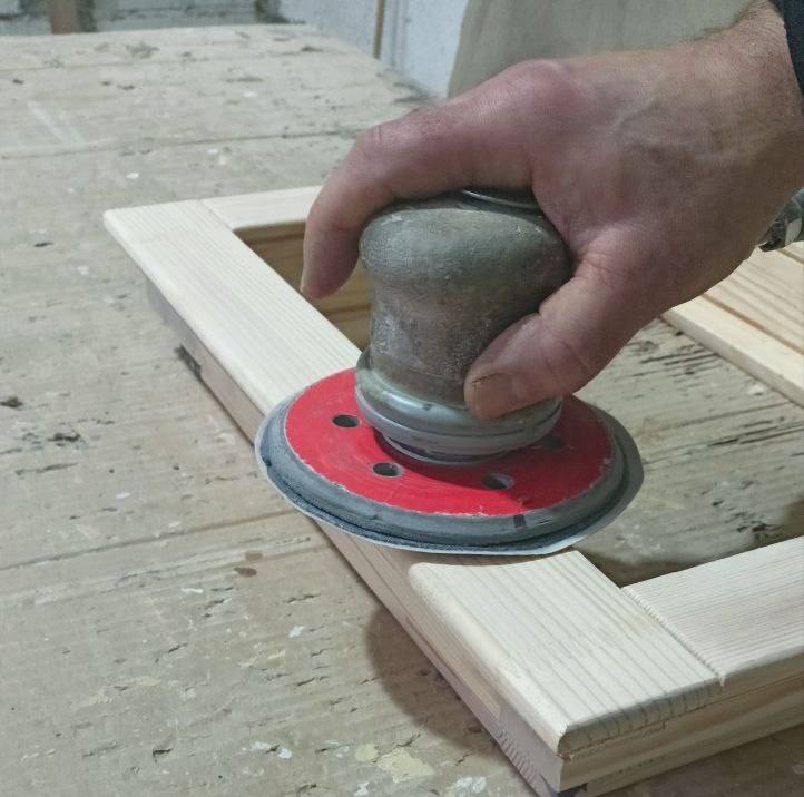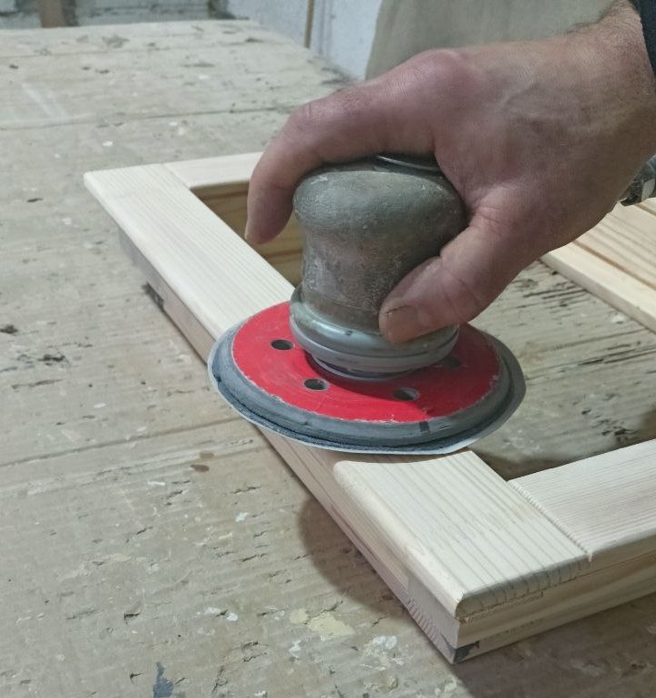 9. После полного высыхания наступает очередь первого этапа шлифовки и шпатлевания мелких дефектов, а также торцов створки. Это важный процесс, который позволяет довести изделие до идеала!