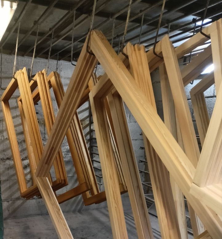 13. Далее изделие тщательно обдувается и следует покраска. Окрашивание происходит в несколько этапов по технологии Немецкого концерна Sikkens или Remmers..