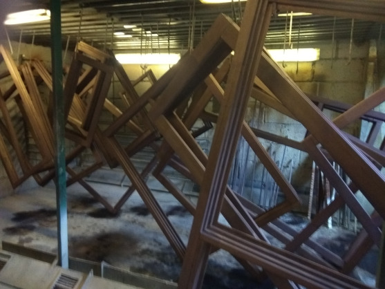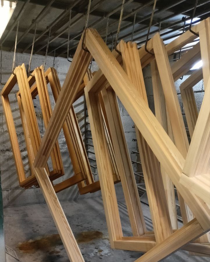 13. Далее изделие тщательно обдувается и следует покраска. Окрашивание происходит в несколько этапов по технологии Немецкого концерна Sikkens или Remmers.