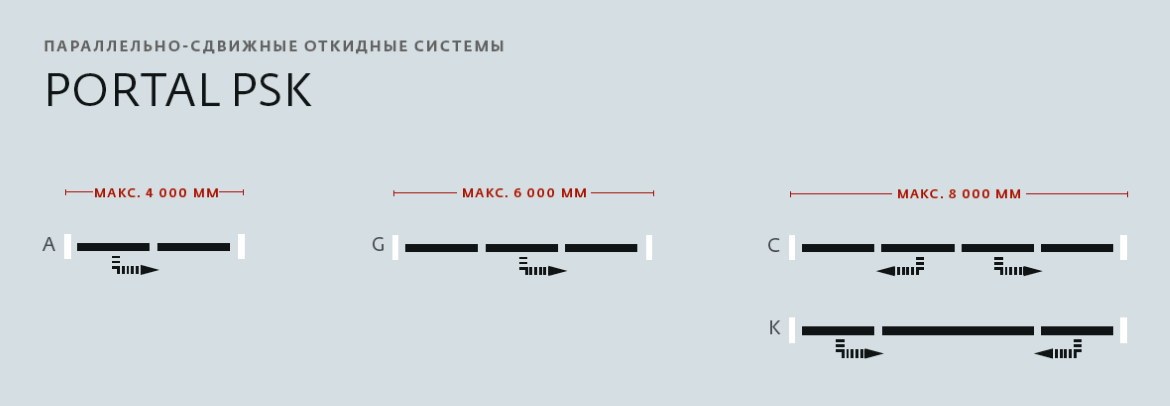 Параллельно-сдвижная система дверей подразумевает открывание путем сдвига створки: оконная створка сначала подается «на себя», а затем скользит по направляющему рельсу в сторону. Основной отличительной особенностью дверей данного типа является наличие режима проветривания и хорошая герметичность конструкции в закрытом положении. В связи с этим порталы данной конструкции широко применяются для остекления выходов на балкон, лоджию или в качестве входных дверей в жилых помещениях.