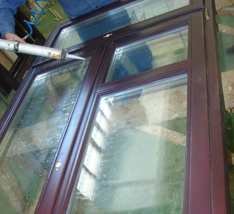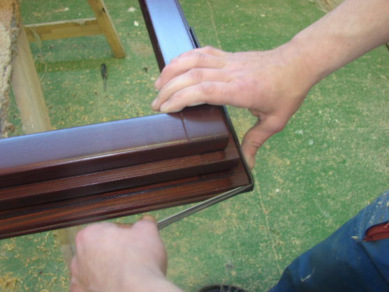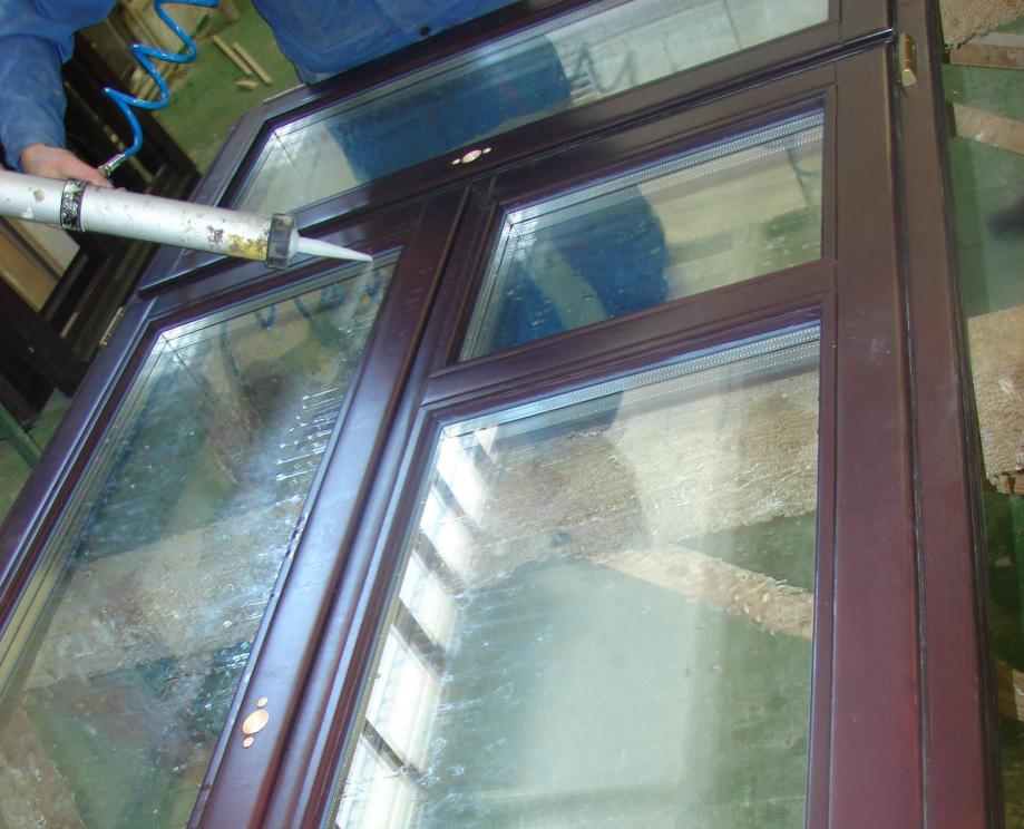 21. Далее стеклопакет крепится штапиком на специальные нагеля и изделие тщательно продувается от пыли и грязи