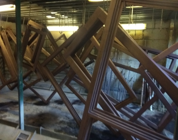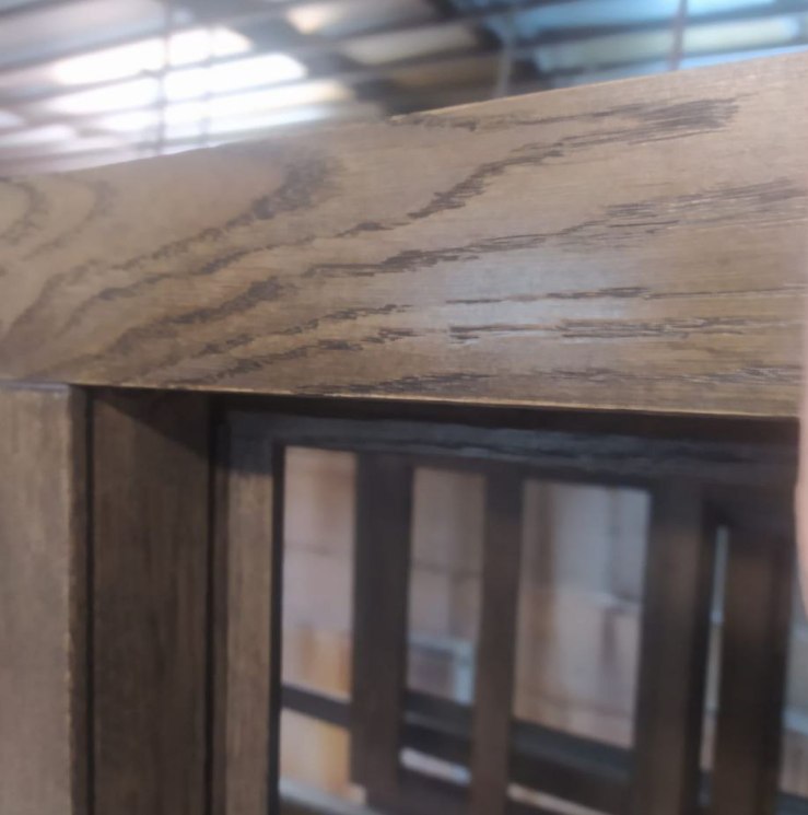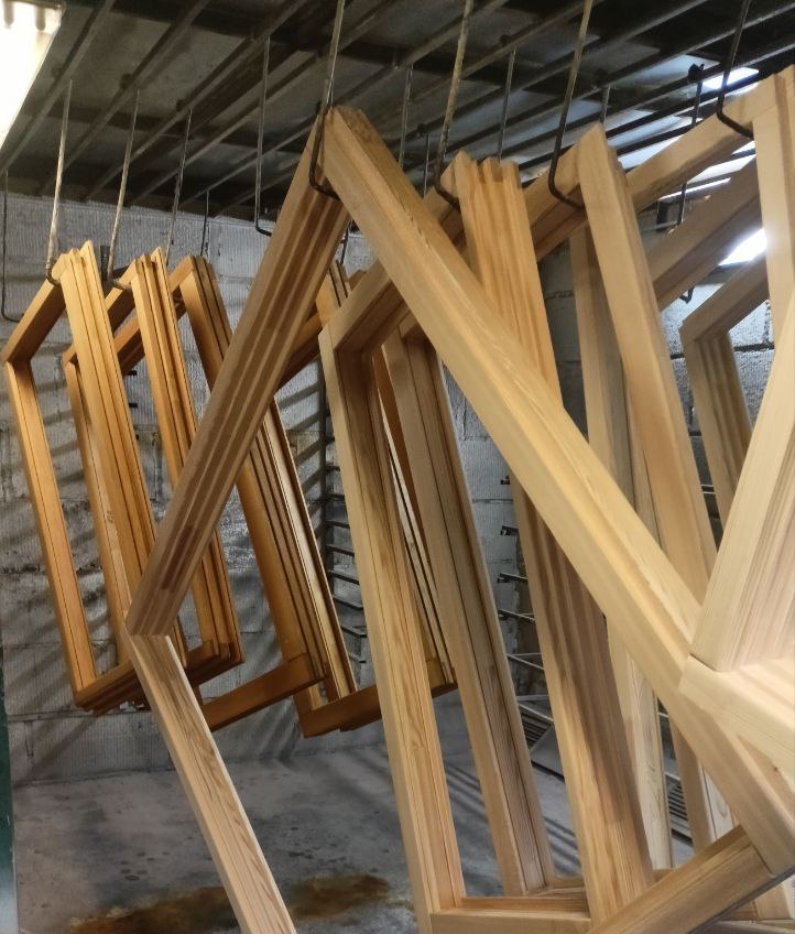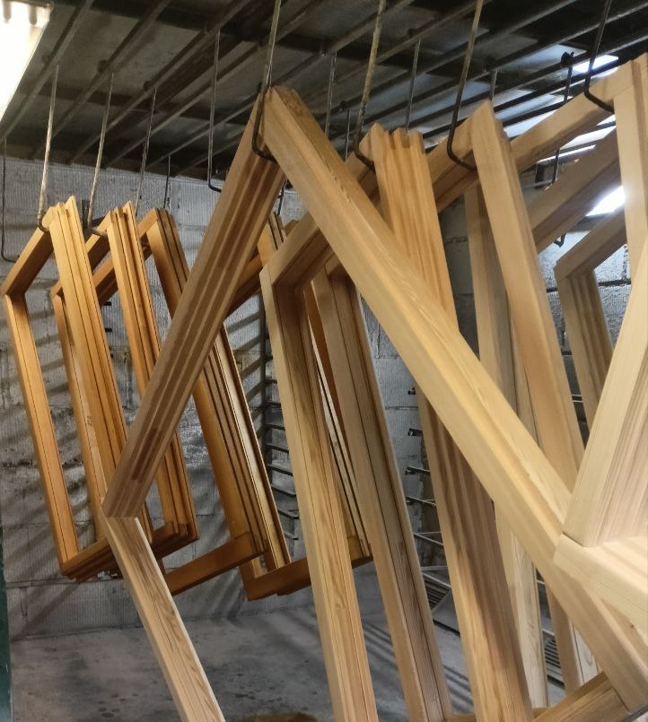 13. Далее изделие тщательно обдувается и следует покраска. Окрашивание происходит в несколько этапов по технологии Немецкого концерна Sikkens или Remmers.