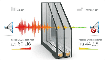 Этого незначительного различия достаточно, чтобы уменьшить уровень шума (по сравнению с окном, в котором установлен обычный стеклопакет) на 4 децибела звука, таким образом, если у вас за окном расположена улица с интенсивным автомобильным движением, в вашем доме уровень уличного шума может стать на 30% меньше! Помимо толщины стекол, для повышения звукоизоляции эффективны: увеличенное расстояние между стеклами стеклопакета, использование стекла вида триплекс и наполнение внутренних камер специальными плотными газами (аргон, криптон).